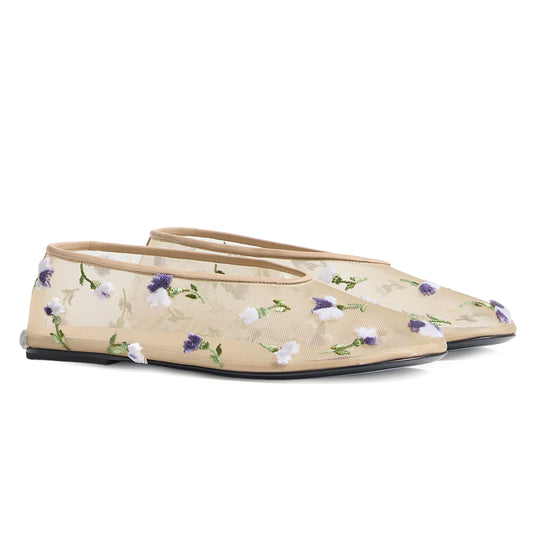 Women Mesh Ballet Flats Rhinestone Breathable Mesh Flats Slip On Ballerina Shoes Embroidered Floral Comfortable Casual Dress Shoes