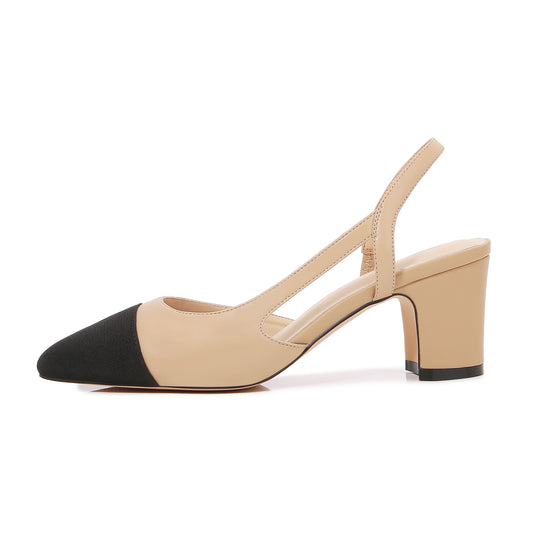 VivaLaver Slingback Pumps Women Chunky Heels Round Toe Two Tone Retro Splicing Office Shoes for Dress Praty Wedding Casual Work Fashion Shoes